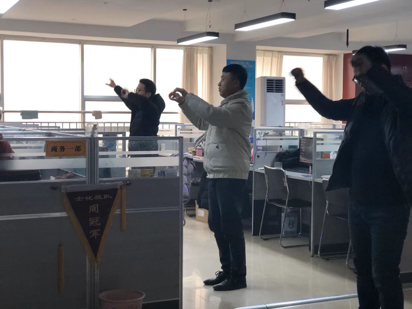 本周日的中午时间,我们企化网络大家庭举办了舞蹈比拼,全体小伙伴分为三组进行比赛,大家认真整齐的排列好队伍站在自己的位置,随着音乐开始进行动作。每个人的表情都十分认真,紧紧盯着前面领舞的人,看他是怎样做的,争取跟他的动作一致,不敢出现一点差错给小组拖后腿。
