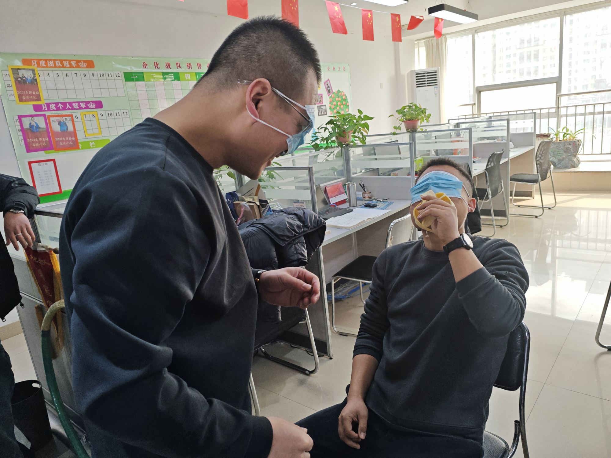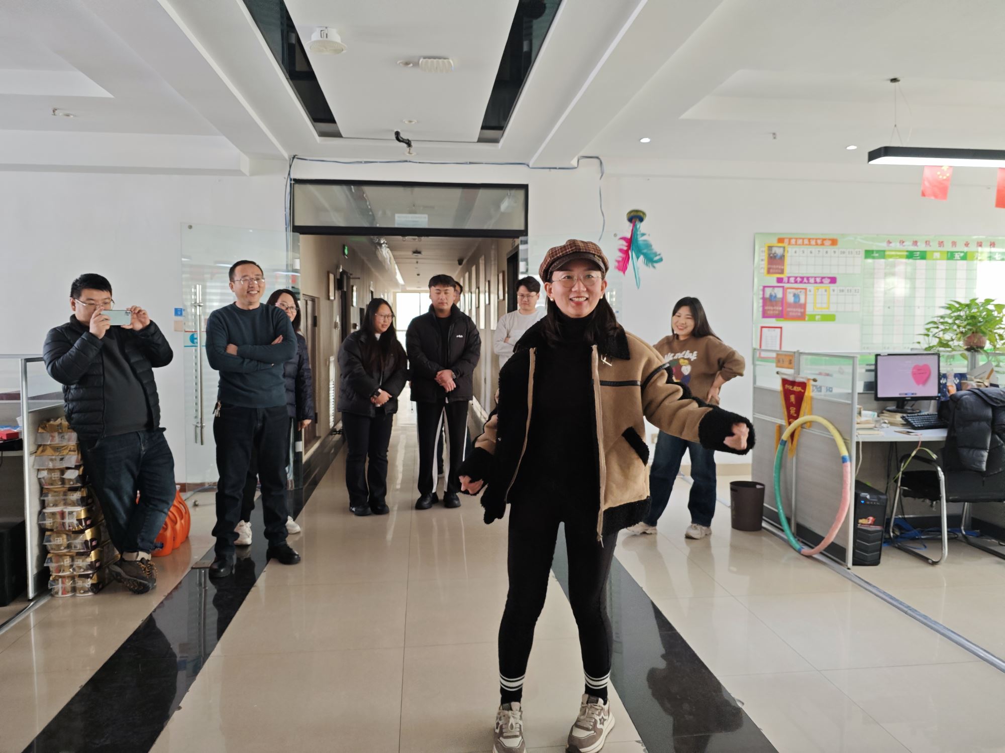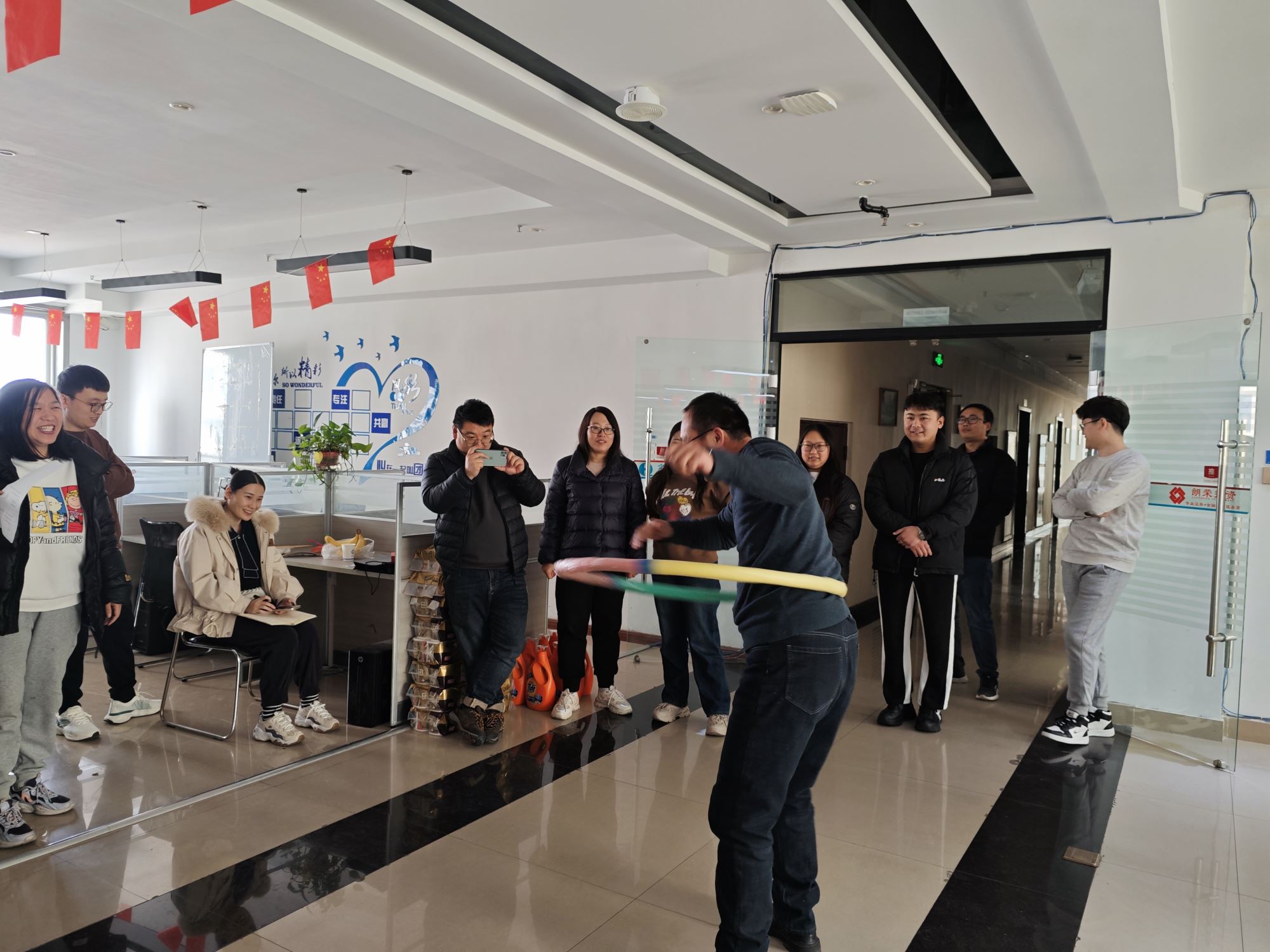 公司决定举办活动并精心准备了节日礼物,准备了丰富的游戏:跳绳唱歌、转呼啦圈、踢毽子、蒙眼喂香蕉、双人夹乒乓球